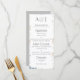Denna eleganta och moderna bröllopsmeny har en vit bakgrund med en kant eller ormbunksblad placerade runt kanten. Färgerna på ormbunkarna sträcker sig från mjuk beige och tan till en azurblå eller marinblå. Två exempel på initialer är tryckta i den övre delen i ett elegant grått typsnitt. Du kan anpassa menyn till att inkludera dina egna initialer och anpassade maträtter. Den nedre delen av menyn visar tre rätter med två alternativ vardera. Du kan ersätta menyalternativen med de maträtter du väljer. Baksidan av menyn är enfärgat grå. Den är lämplig för frukost-, brunch-, lunch- eller middagsfirande.