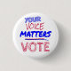 Knapp med ett budskap för att uppmuntra människor att rösta - det krävs att vi alla deltar för att få demokratin att fungera.