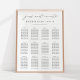 Bröllop-gästdiagram med klassiska svarta och vita funktioner "din sittplats väntar" längst upp i elegantens kalligrafiskript, med dina gästuppdrag i bord under. Utrymme för upp till 12 bord.