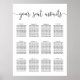 Bröllop-gästdiagram med klassiska svarta och vita funktioner "din sittplats väntar" överst i den handskrivna kalligrafskript med text, med dina gästuppdrag i bord under. Utrymme för upp till 12 bord.
