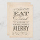 Elegant anpassningsbar inbjudan med orden Ät, drick och var Mycket, Mycket Glad. Passar för jubileer, födelsedagar, vintillställningar, julfestligheter och många andra tillfällen.