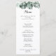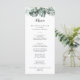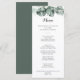 Det här kalligrafimidmenykortet för den tropiska gröna blommigten är en perfekt för ett rustiskt bröllop. Grönt handflatan lämnar buketter med vita vackra blommor. Den här menyn kan användas för bröllopsmottagning, repetitionsmiddag, möhippa eller vilken händelse som helst.