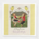 En lycklig-flicka och hennes docka dansar med en välklädd Påskhare. Bilden ramas i silver med blommigtens accenter och två gulters chickar. Budskap: A Glad påsk, liksom solsken efter regnet kommer Påsk gladelighet igen. Bild av ett vykort för Vintage Påsk på anpassningsbarnas gult-bakgrund.