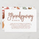 Bjud in dina vänner till din version av Thanksgiving-middag med dessa stilrena inbjudningar! En vit bakgrund visar rik, brun modern handskriven typsnitts typografi. Baksidan av inbjudan till Thanksgiving har ett vackert mönster med höstlöv.