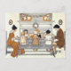 Från en gammal bok. Familjen säger bön före middagen. Ett enkelt bord med bänkar på vardera sidan för barn och vanliga stolar i båda ändar för Mor och Far. Ställ in framför en kamera