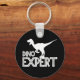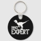 Silhouette av en velociraptor med text Dino Expert. Nyckelkedja för dinosauer älskare.