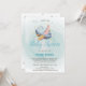 Unik inbjudan till barndusch för enskilda barn med en vattenfärgsdino på ett flygplan.