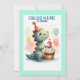 Söt dinosaurie som håller en födelsedagskaka