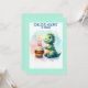 Söt dinosaurie som håller en födelsedagskaka