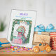 Färglöst baby-födelsedagskalender tack vare kortet där du enkelt kan anpassa texten inuti.