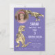 Till flickan som älskar dinosaurier. Den rytande T-Rex inbjuder Dino-fans till en födelsedagsfest. Personifiera denna Tyrannosaurus med en bild, födelsedagsbarnet nummer och festdetaljerna och ni är redo för en rolig dinosaurie-tema dino-födelsedag. Alla dinosauriearter är välkomna. Illustrerad av Catherine Sweetman