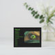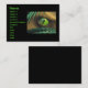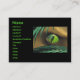 Affärskort med min utformning av en reptil eller dinosauer öga (med reflexer från handflatan träd) tittar genom handflatan fronder.