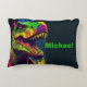 Dino T Rex Cute Kids accent Pillow T Rex Dinosaur i olika nyanser av djup röd, blå, gult, jordtonad grönt. Underbar för pojkar eller barn. Arkeologi Älskare. Animalisk utveckling som Utdödas i en Retro Art Pop Stil-design Jussica, Tidigare Era och Reptile.