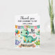 Märk din lilla milstolpe med den här fina Dinosaur-Party-tackkortet från första födelsedagen, som innehåller en charmerande vattenfärgsdinosauridesign. Perfekt för en dinovänlig födelsedagspojke, de där tacken du kort visar söta, förhistoriska varelser, lush grey och lekfull pastel färg, skapande en roligt och ett vismiskt tema. Anpassa med din party-information om du vill få en unik beröring. Idealisk för en dinosaurietemeterad första födelsedag, där tackkort anger tonen för en häpnadsväckande bra! Finns endast på Zazzle.