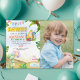 This horizontal invitation features a fun dinosaur theme and includes space for a personalized photo, making it a memorable keepsake for friends and family.