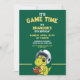 Den här designen kombinerar förhistorisk charm med spel-dagars upphetsning! En vänlig dinosaurie som passar för fotboll ger en lekfull beröring till detta idrottsliga födelsedag. Den pulserande gröntens bakgrund och fet typografi skapar en roligt och en energisk vibe.