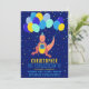 Dinosaur Blå Gul Ballong Konfetti Pojke Födelsedag Inbjudningar