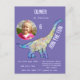 Dinosaur Brachiosaurus Girls Birthday Lila Photo Inbjudan Vykort