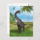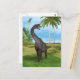 3D digital återgivning av en dinosaur Brachiosaurus mot bakgrund av blå himmel och grönt handflatan träd
