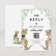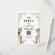 Rolig dinosaurie-tema för bröllop RSVP online QR-kod webbplats svarsbrev med rolig dinosauriebrud och -brudgum samt akvarell eukalyptusgrönska för att ge förhistorisk jurassisk glädje till din bröllopsdag. Modernt fantasifull typografi kalligrafi med lättanpassade mallar så att du kan lägga till bröllopswebbplatsens QR-kod och webbadress samt hjälpsamma instruktioner för gästerna. Unik T-Rex brud och brudgum dino med akvarell botanisk lövrik originalkonst av konstnären Catherine Sweetman Perfekt för bröllopsmottagningen eller repetitionen middag. Matchande bröllopssvit innehåller allt du behöver på din roliga bröllopsresa