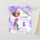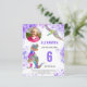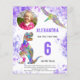 Lila akvarellstänk dino 6-års födelsedagsfest budget inbjudan för flickan som älskar dinosaurier. Dessa färgglada rytande T Rex och flygande pterodaktyl inbjuder Dino-fans till en rolig sjätte födelsedagsfest. Flerfärgad Tyrannosaurus rex och pterodaktyl i livfulla rosa lila blå grön och turkos Personifiera denna psykedeliska jurassiska dino-design med ett foto, födelsedagsnumret och festsedlarna och du är redo för en actionfylld dinosaurie-tema dino-födelsedag. Alla dinosauriearter är välkomna. Originalillustration Illustration av Catherine Sweetman