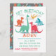 1:a födelsedagsinbjudan DinosaurDenna födelsedagsdesign har en färgstark dinosauer mönster på baksidan av kortet.