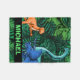 Denna dinosauridesign är underbar för dinosauer älskare i ditt liv. Den dinokemiska löv-filten har en trex, triceratops, brontosaurus och raptor och kan anpassas med pojkens eller flickans namn.