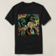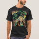 Dinosaur Mania! Retro-style illustration reminiscent of 1950s science fiction movie posters. It features a large, menacing dinosaur with green scales and sharp teeth dominating the background, its mouth open in a roar. Men and women are in shock!