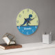 Dinosaur Navy Blue Grönt Teal Wall Clock Stor Klocka