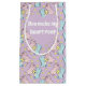 This adorable Valentine’s Day gift bag has my hand drawn pastel dinosaurs in pink and blue, nuzzling sweetly against a soft lavender background. Scattered hearts in pastel yellow add a playful touch. You can customize the short message that sits inside a heart-shaped frame. It’s perfect for wrapping up romantic surprises with a dash of prehistoric charm.