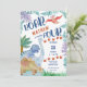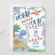 Dinosaur-födelsedagsinbjudan till en pojkes 4e födelsedagen. I ordalydelsen står det: "Roar [namn] är på väg fyra". Vattenfärgsdinodesign med söta dinosaurier i jurassik, tropiska djungelinställningar. Bläddra i butiken om du vill ha mer inbjudan på din födelsedag.
