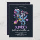Fira din lilla upptäckares första resa runt solen med denna episka rymdtemade födelsedagsinbjudan! Med en cool astronaut som rider på en T-Rex genom galaxen är denna anpassningsbara inbjudan perfekt för en dinosaurieälskande babyboys 1-årsdag. Bra för rymdpartyn, dinosaurieteman och kosmisk kul. Anpassa den direkt på Zazzle!