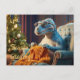 Dinosaur stickande God jul Helg Vykort
