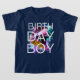 Fira din lilla speciella dag med våra vibranta pojkars t-shirt med en färgstark graffiti T-Rex-huvuddesign. Öga-fångstdesignen visar en lekfull blandning av färg och en djärv typografi som visar "födelsedagspojke" på framsidan. Den här t-tröjan är tillverkad av mjuk och andningsbar väv och ger dig bekvämlighet för din lilla äventyrare när de tar emot sin dinosauretartemerade födelsedagsfest i stil.