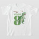En djärv dinosaur T Rex med Pterodactyls-pojkens födelsedagstest. Underbar för åldersgrupperna 1-9. Dinosaur med fetstil, vattenfärgad grönt. Lägg till dig namn och ålder.