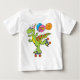 Jag är 1 doktor. Den här 1:a födelsedagsdesignen har en söt dinosaurie med grönt med röda prickar på rullskridskor och ballonger med bildtext I är 1. Samordna första födelsedag med rullbläddring i dinosauer t-shirts, födelsedagsknappar, födelsedagsfest inbjudan och födelsedagspass.