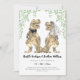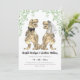 Gläd dina gäster med denna roliga dinosaurie-inspirerade bröllopsinbjudan med roliga dinosauriebrud och -brudgum samt vattenfärgseukalyptusblad. Lätt att anpassa med brudens och brudgummens namn, bröllopsdatum och alla detaljer om bröllopsplatsen i modern typsnittsstil. Roliga T-Rex-dinosaurieillustrationer av brud och brudgum i bruna nyanser med botaniska vattenfärgsgröna växter i gröna nyanser. Unik originaldinosauriekonst av konstnären Catherine Sweetman