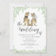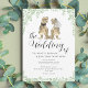 Om du och din partner älskar dinosaurier så är denna T-Rex-dino-tema bröllopsinbjudan perfekt för din speciella dag. Lättanvända mallar för att lägga till brudens och brudgummens namn och bröllopsdatum och alla viktiga detaljer. Rolig Dinosaurie brud och brudgum T-Rex med akvarell eukalyptusblad och modernt manus. Originalkonst av konstnären Catherine Sweetman