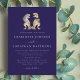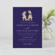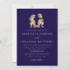 Överraska dina gäster med denna roliga och stilrena dinosaurie-inspirerade vigselinbjudan i marinblått och vitt, perfekt för par som delar en kärlek till dinosaurier! Med minimalistiska T-Rex-illustrationer av brud och brudgum i jordnära bruna toner förenar denna design humor och elegans med en modern twist. Den rena, moderna typsnittsstilen i krispigt vitt på en stilren marinblå bakgrund tillför en sofistikerad touch samtidigt som den behåller en lekfull stämning som speglar er unika kärlekshistoria.