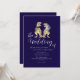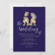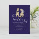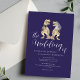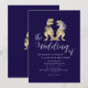 Dinosaur-tema Bröllop marinblå och vit Inbjudan Elegant Modern T-Rex Brud & Brudgum dino Design