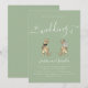 Sagegrön dinosauriebröllopsinbjudan. Unik och rolig design med T-Rex-brud och -brudgum