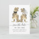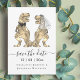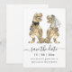 Gör din bröllopsdag oförglömlig med det här fantasifulla dinosaurie-tema ”Spara datumet”-kortet med en T-Rex brud och brudgum!