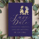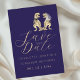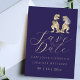 Gör ditt bröllopsbesked verkligt oförglömligt med det här fantasifulla dinosaurie-tema "Spara datumet"-kortet, med en bedårande T-Rex-brud och -brudgum.