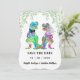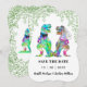 Gläd dina gäster med denna roliga dinosaurie bröllopsinbjudan med färgrik T-Rex brud och brudgum med akvarell skogsflora. Lätt att anpassa med dino brud och brudgums namn och bröllopsdatum. Färgrika akvarell Tyrannosaurus Rex brud och brudgum illustrationer med modern typografi. Unik Jurassic dinosaurie originalkonst av konstnären Catherine Sweetman