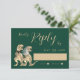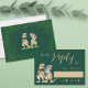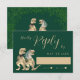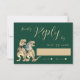 Botaniskt dinosaurie-tema för svarskort vid bröllop. Med en rolig T-Rex brud och brudgum med akvarell eukalyptusblad ger detta mörkgröna kort en unik och fantasifull känsla till din speciella dag. Den moderna typografin i kalligrafistil är både rolig och lätt att anpassa, vilket gör det enkelt att matcha din bröllopsstil. Designad av den begåvade Catherine Sweetman visar akvarellkonsten en charmig blandning av botanik och dino-inspirerad kärlek. Perfekt för din bröllopsmottagning eller förövning middag, detta RSVP-kort är en del av en komplett brölloppsserie som innehåller allt du behöver för att göra din bröllopsresa lika minnesvärd som din kärlekshistoria.
