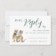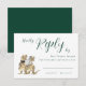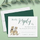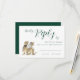 Dinosaur-tema bröllopsvar inklusionskort. Med en rolig T-Rex brud och brudgum med elegant modern mörkgrön typsnittsbröllop RSVP-kort ger en unik och fantasifull känsla till din speciella dag. Elegant kalligrafi-stil typsnitt och modern typografi rolig och enkel att anpassa, vilket gör det enkelt att matcha din bröllopsstil. Designad av konstnären Catherine Sweetman, visar akvarellkonsten en charmig blandning av stilren design och dino-inspirerad kärlek. Perfekt för din bröllopsmottagning eller repetition middag, detta RSVP-kort är en del av en komplett bröllopssvit som innehåller allt du behöver för att göra din bröllopsresa lika minnesvärd som din kärlekshistoria.