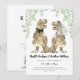Överraska dina gäster med denna roliga dinosaurie-inspirerade bröllopsinbjudan med QR-kod till webbplats. Rolig dinosauriebrud och -brudgum med vattenfärg bottenflora. Lätt att anpassa med online-RSVP webbplats QR-kod, brudens och brudgummens namn, bröllopsdatum och alla detaljer om bröllopsplatsen i modern typsnittsstil. Roliga T-Rex-illustrationer av brud och brudgum i bruna nyanser med vattenfärgs-eukalyptusblad i gröna nyanser. Unik original-dinosauriekonst av konstnären Catherine Sweetman