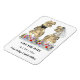 Gläd dina gäster med denna roliga dinosaurie-tema bröllopsinbjudan magnet med T-Rex brud och brudgum som står i en färgrik äng med vilda blommor. Lätt att anpassa med brudens och brudgummens namn och bröllopsdatum. Roliga T-Rex brud och brudgum illustrationer med modernt fantasifull typografi. Unik originalkonst av konstnären Catherine Sweetman