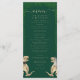 Rolig dinosauriebröllopsmeny T-Rex brud och brudgum med akvarell eukalyptus grönska Anpassad Jurassic-tema bröllopsmottagningsmeny