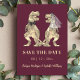 Dinosaur-tema Burgundy Bröllop Spara Datum Datumet